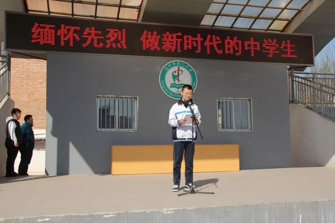 同学们,就让我们行动起来,在家庭,孝敬父母、关怀他人;在学校,团结友爱、创新进取,以实际行动告慰青松下长眠的烈士。三年辛苦,三年拼搏,三年与晨星相伴,和朗月共眠,柔弱的双眼开始坚定与执著,稚嫩的双肩开始承担责任与未来。水常无华,相荡乃成涟漪;石本无火,相击乃发灵光,迸发的是思想火花,成就的是英雄气概,展现的是青春风貌,延续的是前哲流风。又是一年清明时,雨没有纷纷而下,一轮红日正从东方冉冉升起,时光易逝,精神不死。新时代已吹响前进的号角,二中学子,大气磅礴,心怀天下!