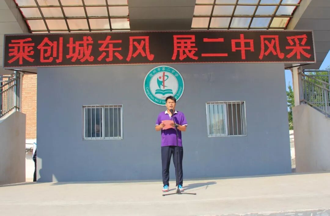 9月2日上午,沧州市第二中学迎来了新学期第一次升国旗。庄严的升国旗仪式之后,学生发展中心主任杜瑞庆给全体学生上了升旗第一课。