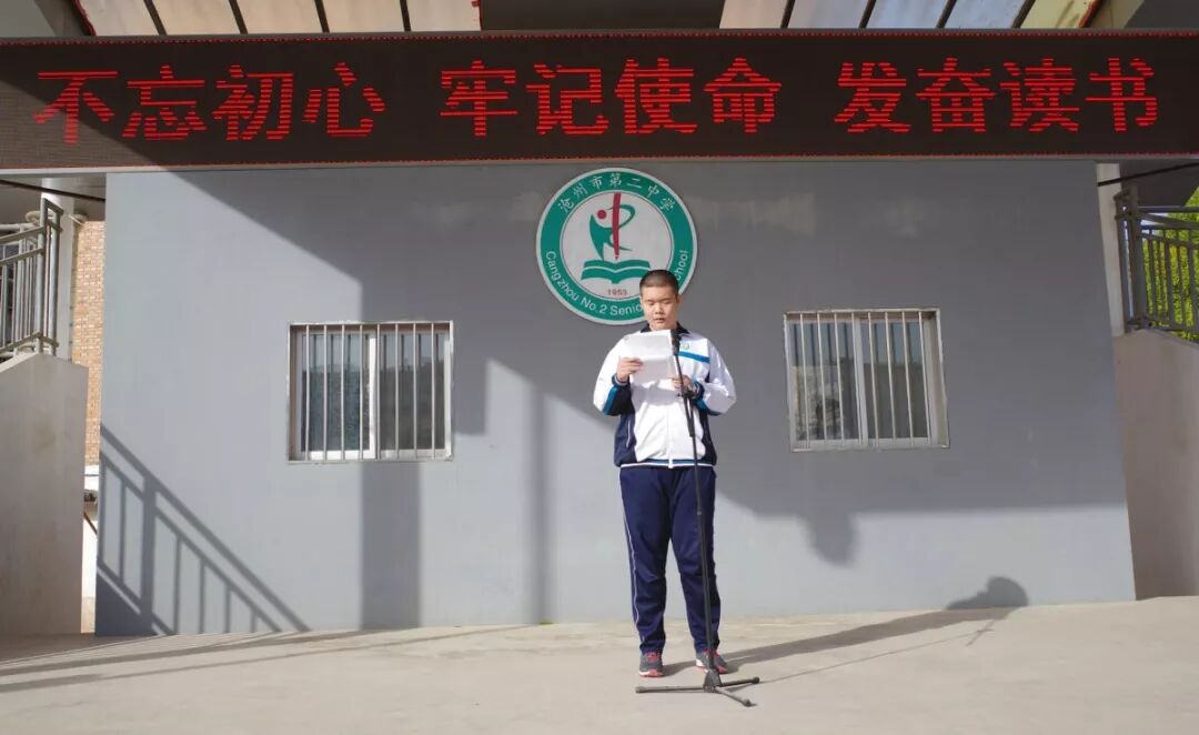 10月28日,升国旗之后,高二1班苑磊做了题为《不忘初心 牢记使命 发奋读书》的演讲。