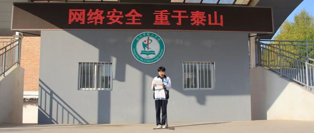 11月4日,国旗下,高二17班杨馨月做题为《网络安全重于泰山》的演讲。