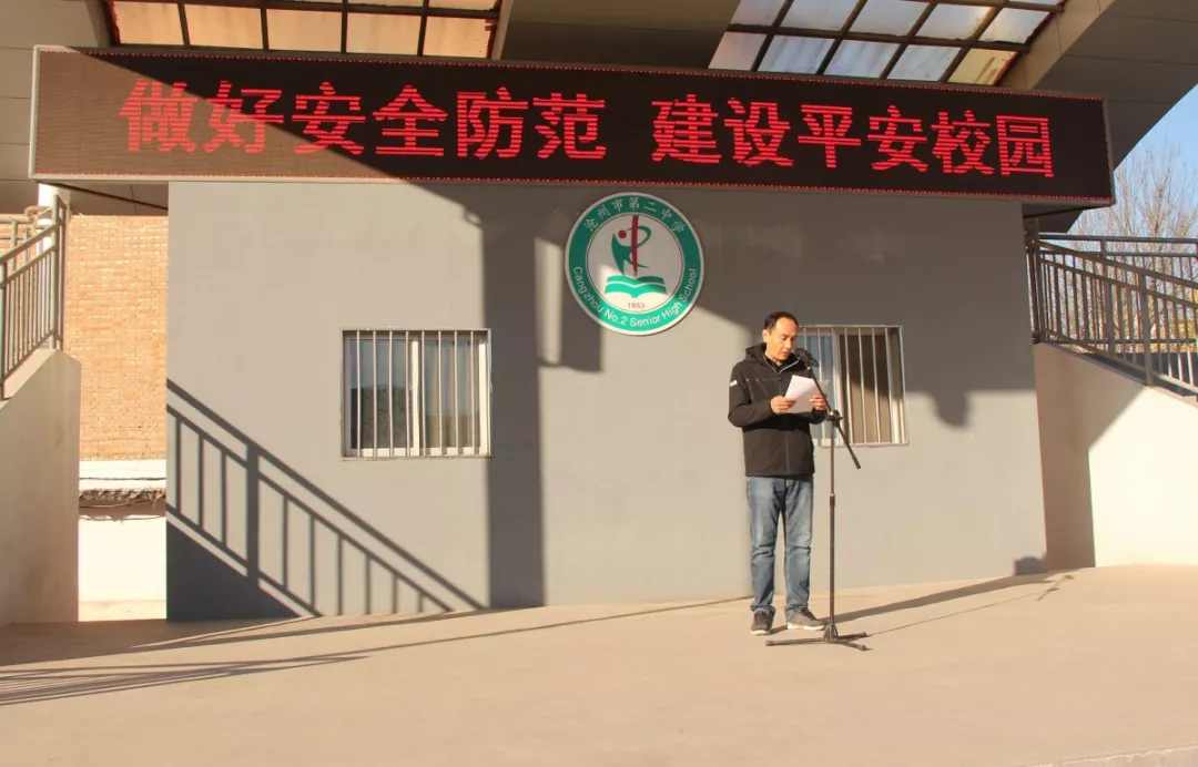 11月25日,国旗下,校安办主任王西涛做了题为《做好安全防范 建设平安校园》的演讲。