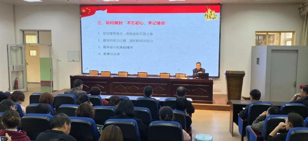 按照市教育工委对第二批“不忘初心、牢记使命”主题教育的安排部署,10月23日下午,我校党委书记韩宝祥同志组织全体教职工开展了一堂关于“不忘初心、牢记使命”的主题教育专题党课。