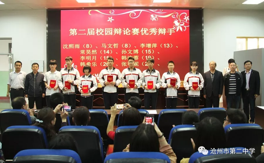 4月2日下午,辩论赛闭幕式在大会议室举行。闭幕式由苗杰主任主持,高一所有班主任和所有辩手到场,韩宝祥校长、郑锦侠副校长、胡永生副校长等领导参加会议。