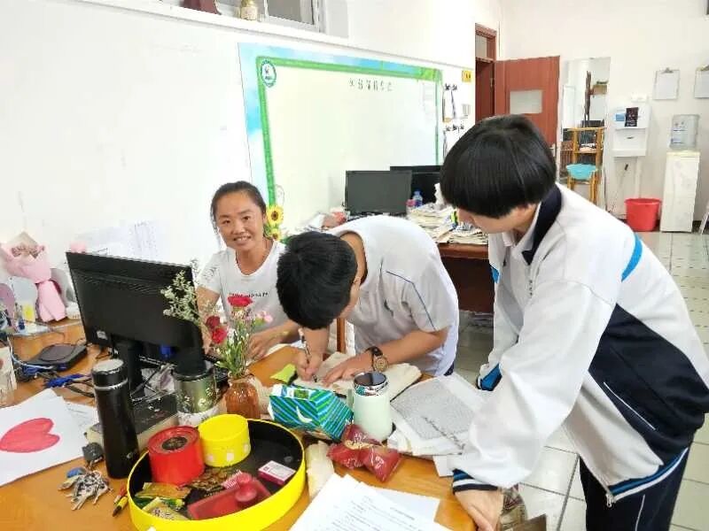 说起王红霞老师,大家无一不称赞她的勤奋严谨。她是年级部里的“老干事”了,无论是排课表、调课、考勤、考务,还是各项繁杂的教学安排上的“小”任务,到了她的手里,一律理得又清楚又明白,简直是高二年级部的“大管家”。2018年,她又在繁忙的教学任务中接手了14班班主任的工作。新“官”上任,丝毫不见她有半分慌乱,从早上5点30分到晚上10点45分,她几乎"长"在学校里,比学生到校早,比学生离校晚,办公室、教室、操场到处都有她不知疲倦的身影,处理各项事务有条有理,仿佛有着分身术一般。有一次,王红霞老师生病了,一直拖到月底放假才去做了手术,周日学生返校,她又早早坐在教室等候着自己的学生了。王红霞老师就好比发光的蜡烛、吐丝的春蚕,这种勤奋严谨之美引得领导同事交口称赞。