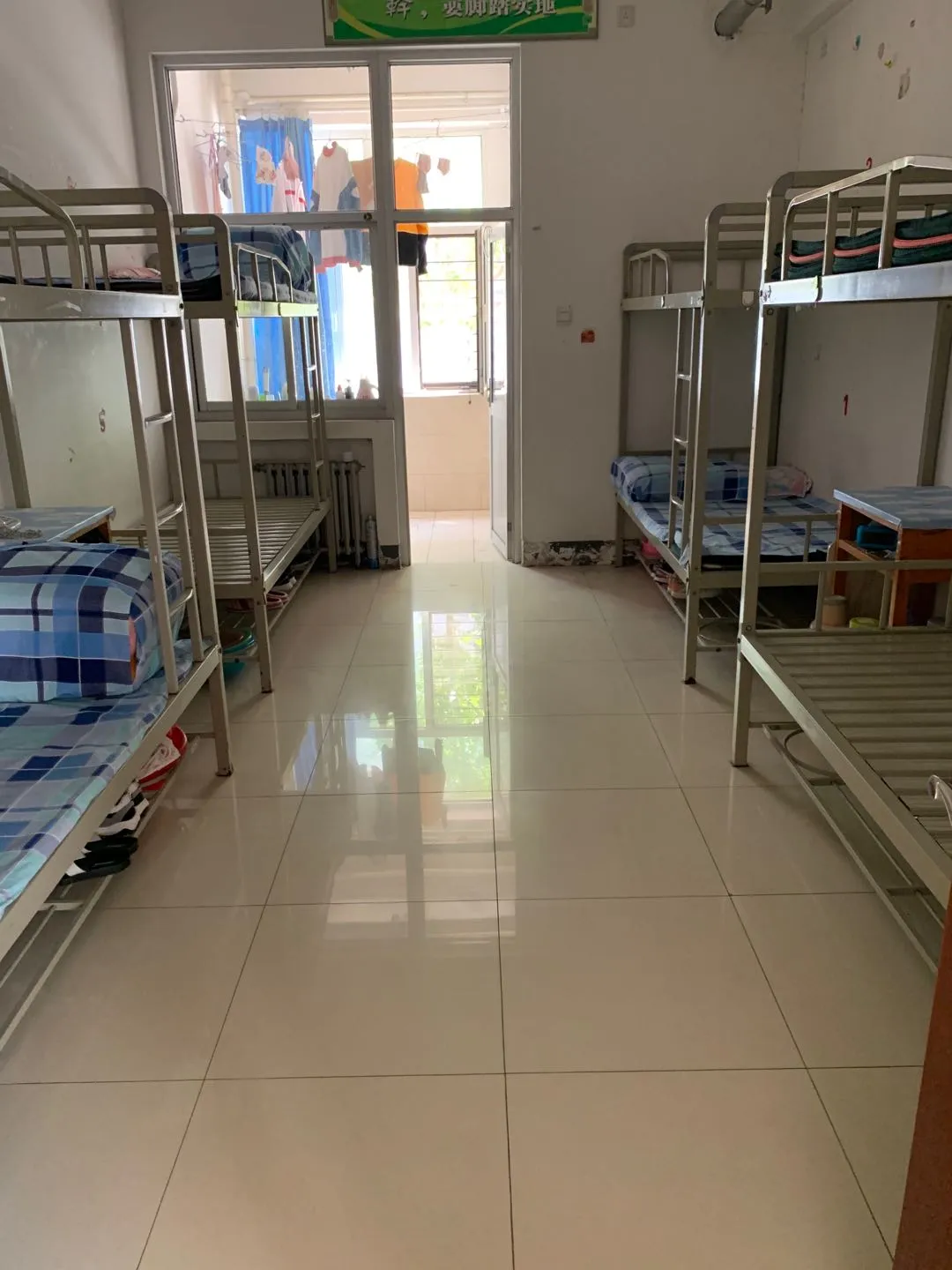 为了迎接高三同学们归来,学生处很早就组织人员对宿舍进行了彻底清扫。扫地、擦窗、抹桌、拖地、消毒。宿舍环境干净整洁、焕然一新。