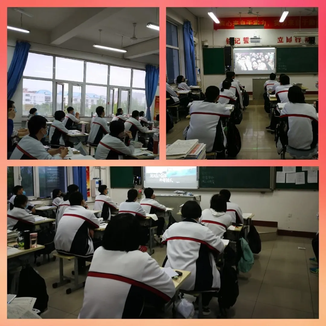 高三年级学生观看五四青年节专题宣传片。前事不忘后事之师,青年学子要铭记历史,满怀爱国热情,奋发图强,为实现中华民族伟大复兴而努力奋斗。