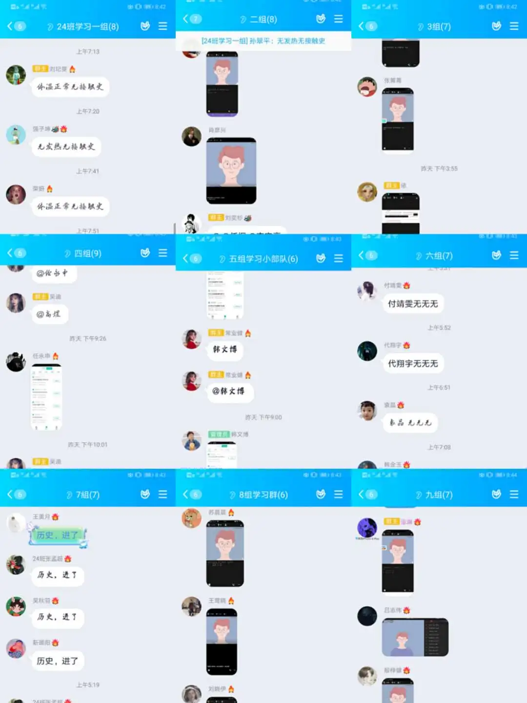 为了鼓励学生学习,不让任何一个同学掉队,贾老师加强线上管理,组建学习小组,每个组7-8人,组长负责考勤、作业统计,交给各科课代表。贾老师及时检查督促,定期召开线上家长会,和家长们沟通学生的线上学习状态。