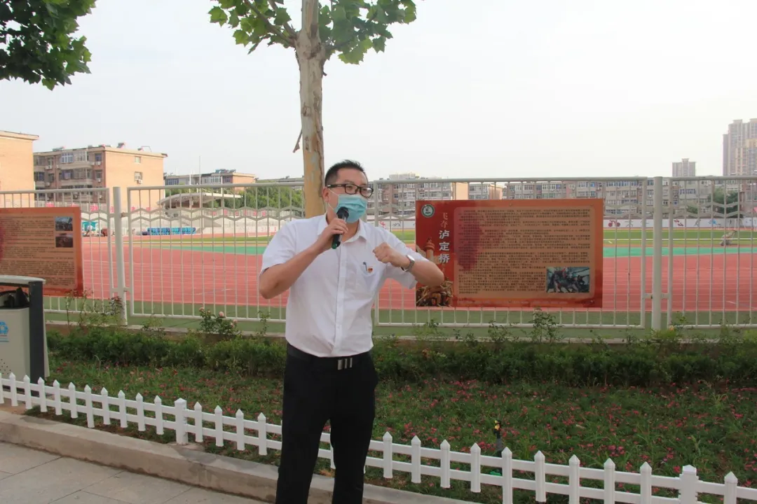 韩校长指出,红色主题公园雕塑《艰苦岁月》生动再现了当年红军战士胸怀坚定信仰、不畏艰难困苦、对未来充满信心的革命乐观主义精神。韩校长回顾了中国共产党从建党到建立新中国的艰苦卓绝的历程。中国共产党在艰难困苦的斗争中不断发展壮大,领导工农红军爬雪山,过草地,顽强走完二万五千里长征,带领全国人民取得革命胜利,建立新中国,新中国是无数仁人志士用鲜血和生命换来的。新中国成立以后,中国共产党又带领全国各族人民开展基础建设、实行改革开放、探索发展中国特色社会主义制度、实现小康社会。2020年我们遭受了重大疫情,14亿中国人民在党的领导下守望相助,万众一心,同舟共济,将疫情有效地控制住!我们一定要珍惜来之不易的今天,认真学习,艰苦奋斗,常怀一颗爱国之心,永葆精忠报国之志,继承发扬红色文化,传承红色基因。每一位二中人都要时刻热爱我们“富强、民主、文明、和谐”的伟大祖国,以生活在“自由、平等、公正、法治”的社会感到骄傲,努力做一名“爱国、敬业、诚信、友善”的优秀公民。