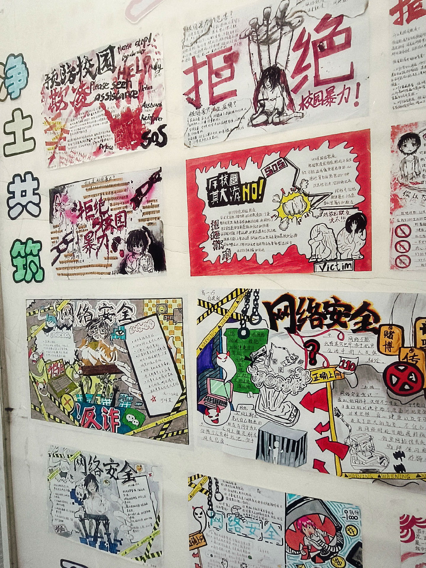 在“校园净土,友爱共筑”的主题下,一幅幅描绘着和谐校园、友爱互助的画面跃然纸上。同学们用生动的笔触,展现了校园中那些温馨、感人的瞬间,传递出对校园欺凌零容忍的坚定态度。这些作品不仅增强了同学们的自我保护意识,更激发了大家共建和谐校园的责任感与使命感。