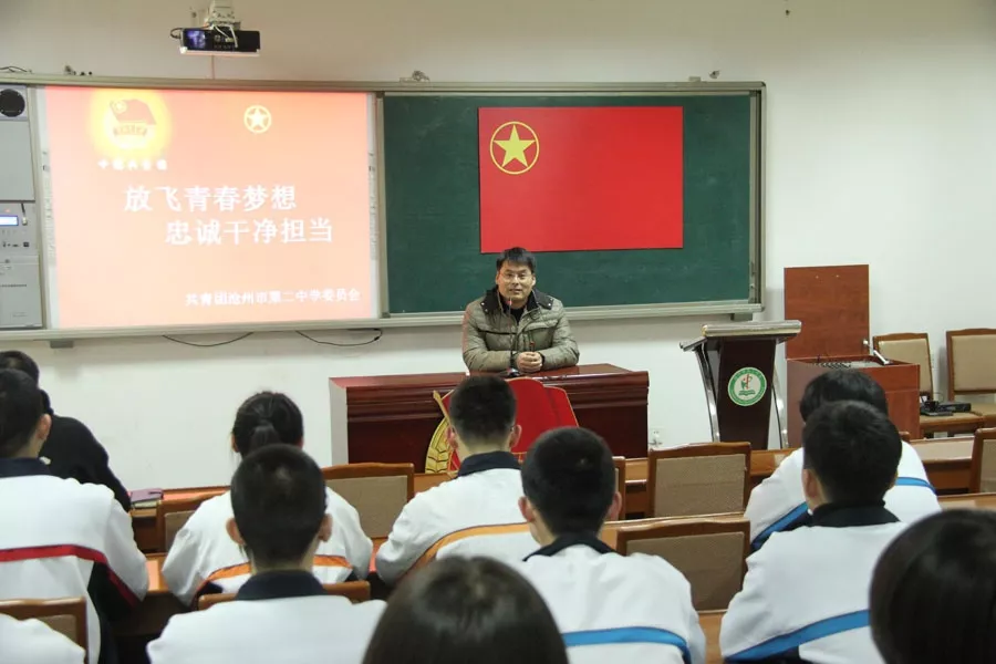 12月14日下午,我校团委组织举办主题为《放飞青春梦想 忠诚干净担当》的团课暨2018年入团积极分子入团仪式。参加人员有团委书记杜瑞庆、团委副书记葛立运,活动由葛立运老师主持。