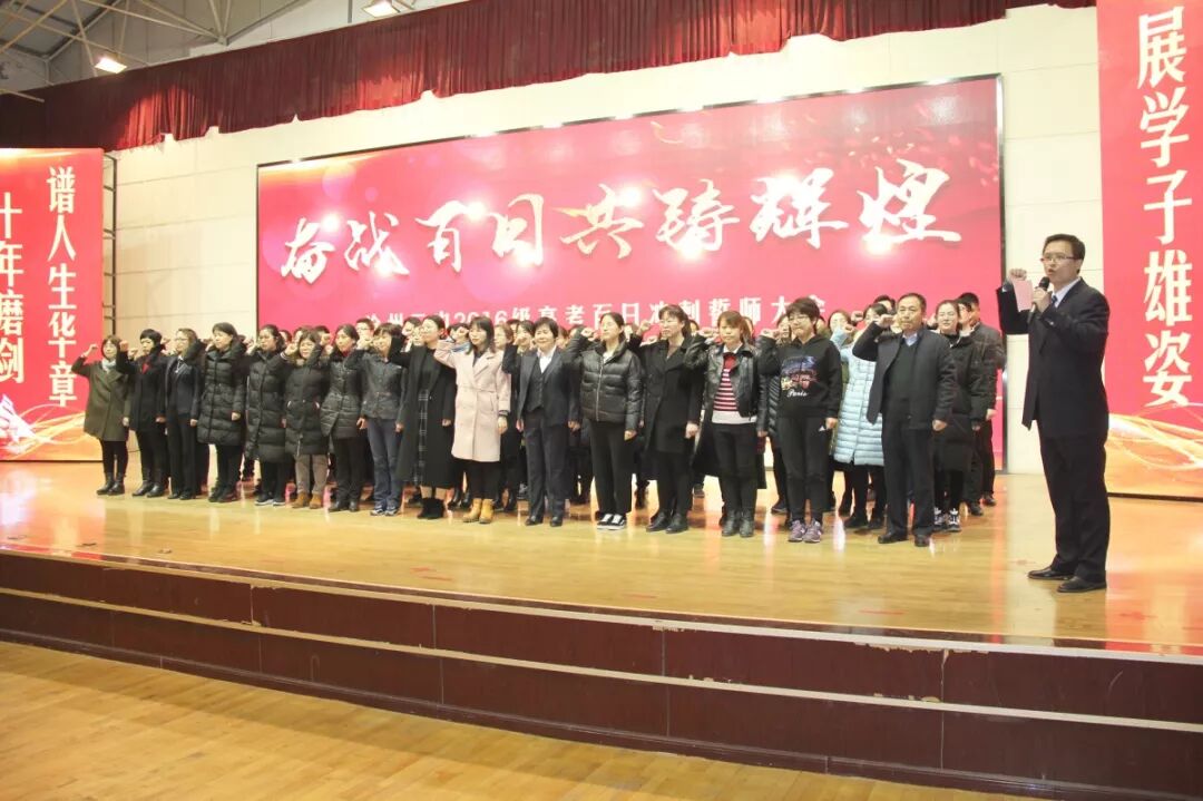同学们!让我们打点行装,背负老师的嘱托,父母的期望。承载必胜的信念,承载母校的荣光,拼搏百天,奋斗百天,成就人生理想,续写我们的辉煌!”