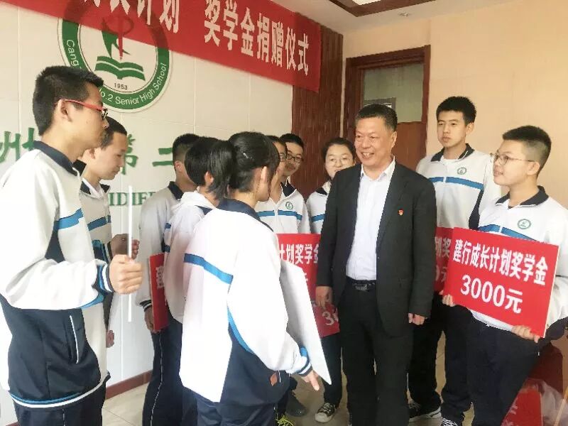 4月13日下午,在我校会议室举行了沧州建设银行“成长计划”公益项目奖学金捐赠仪式。出席捐赠仪式的有建设银行赵俊彬副行长,张艳梅副主任,沧州二中郑锦侠副校长,高一年级部苗杰主任,刘洪芳、张英彬副主任,还有接受捐助的10名高一年级德智体美全面发展的优秀学生。