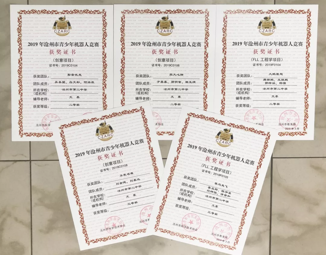 3月9日在沧州市青少年机器人竞赛中,获得二等奖3项,三等奖2项