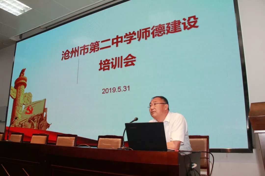 刘校长解读了沧州市教育局关于学校师德师风建设的会议精神,分析了目前我市在师德师风建设方面存在的问题。为此,刘校长围绕“师德”和“新时代中小学教师职业行为十项准则”以及立德树人教育根本任务对教师的要求等几个方面展开培训。