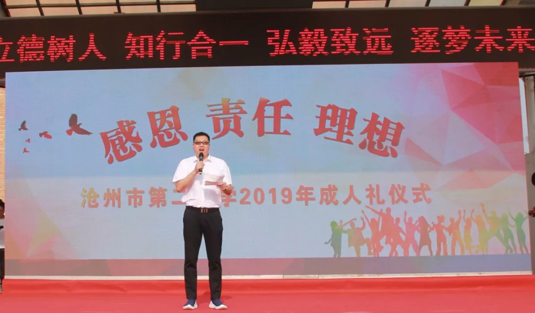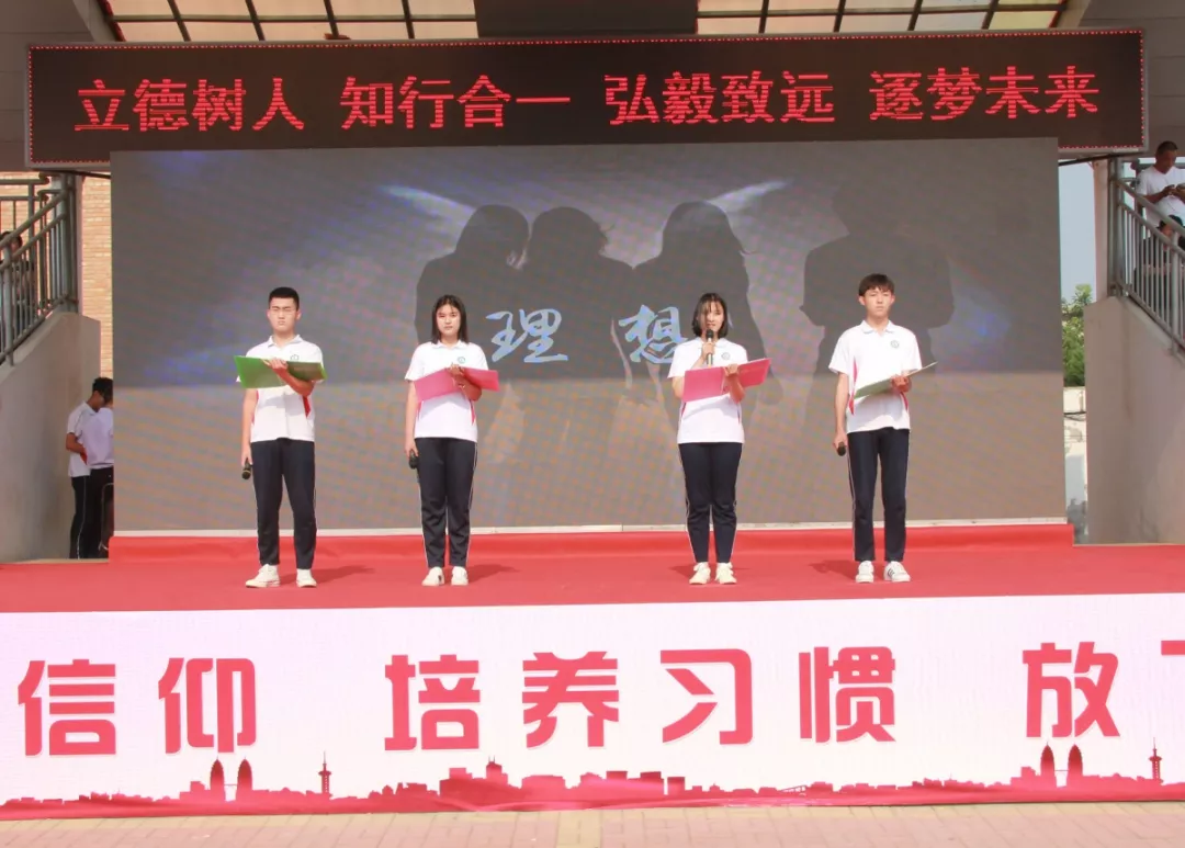 6月18日朝阳初升,学校领导、学生家长和高三全体师生齐聚操场,隆重举行2017级学生成人仪式。