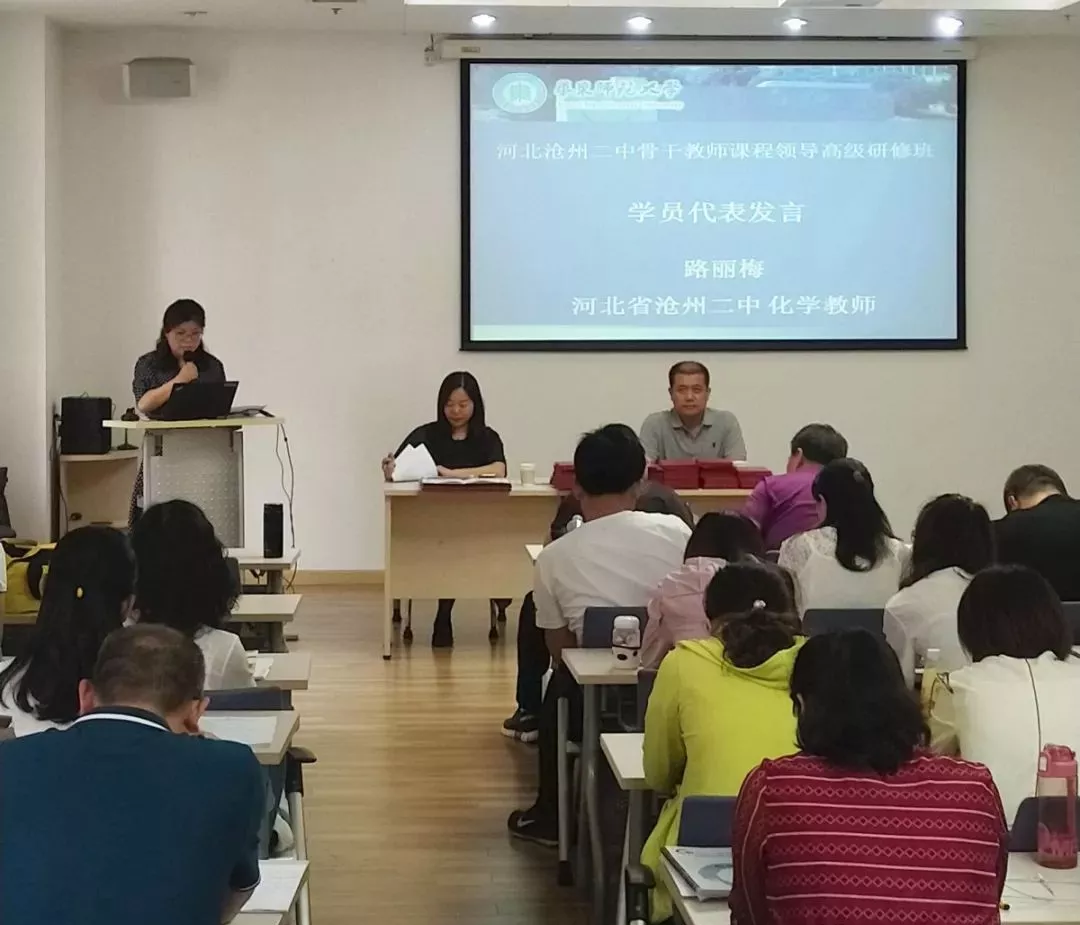 沧州二中全体高三毕业班教师课程高级研修班于6月16在华东师范大学举行结业仪式。华东师范大学课程与教学系主任周文叶教授,沧州市第二中学教学校长胡永生出席了结业仪式。