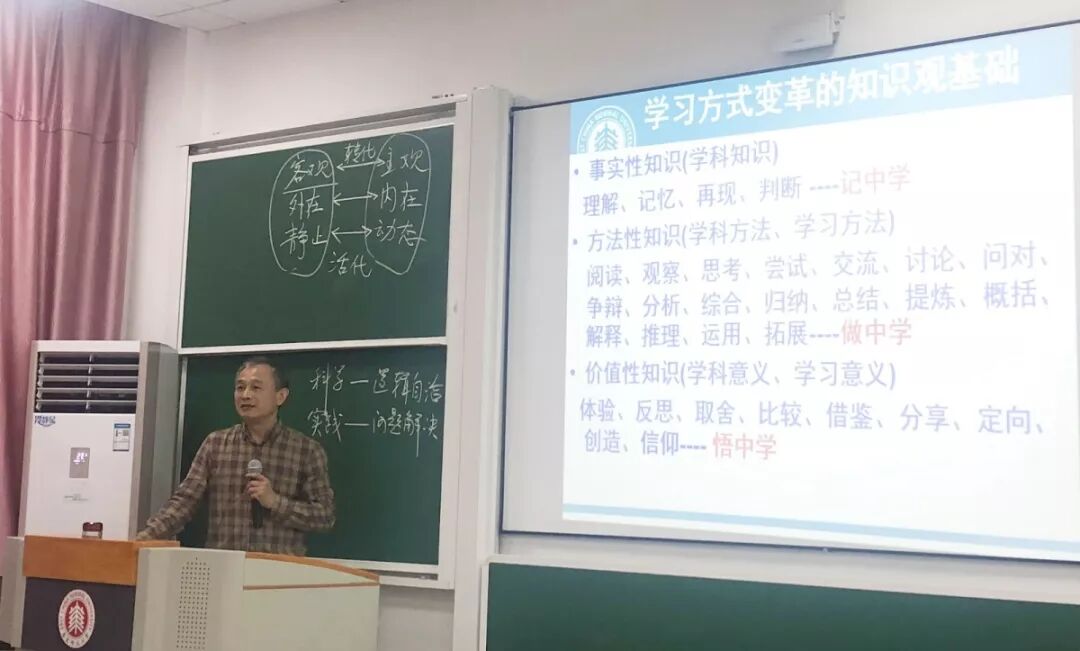 仅学习高深的理念是不够的,课堂的理念还需要在指导实践中切实生效。课堂上,将专业学术报告和教学实践紧密结合起来,教授们结合教育现状中存在的具体问题,帮助我们分析并解决了教育教学工作中存在的种种困惑和典型难题。“培养学生,要注重‘做中学’和‘悟中学’,具体的可操作的方法和策略是什么呢?”吴刚平教授讲授课堂资源开发和学习方式变革令我们大开眼界,深受启发。“作为一名教师,要修炼成优秀的教练、出色的导游,要擅长利用合理的策略进行教学!”课程分解专家朱伟强教授幽默风趣,循循善诱。“我如何确定班上的学生能够做什么,我才能放心他们把目标中的核心素养落实了呢?……”实战派精英周文叶教授引导我们学习中思考,思考中总结,总结中提升。