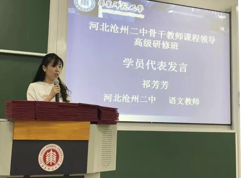 祁芳芳老师代表全体学员发言,表达了对给予这次进修机会的校领导和华东师范大学的谢意,尤其表达了对各位国内顶尖的专家教授的治学精神的叹服!