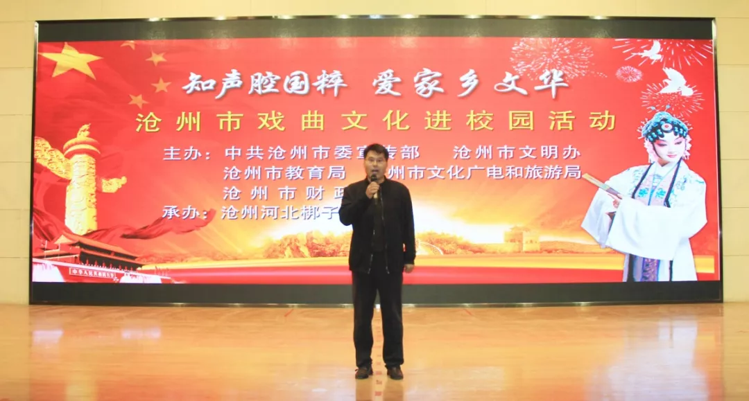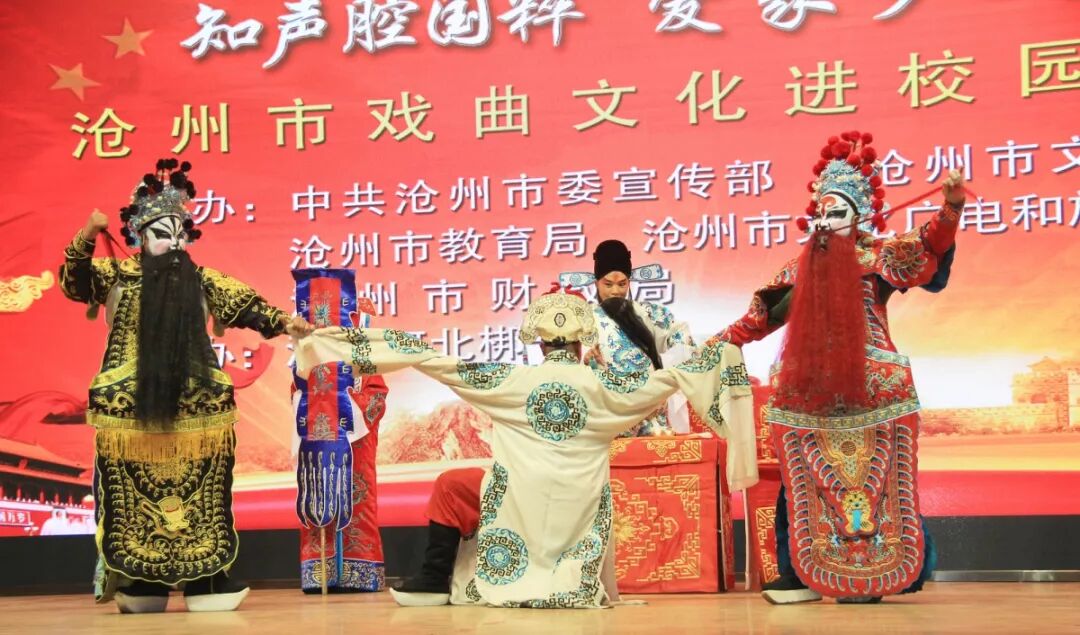 弘扬、普及传统文化,传承、传播国粹艺术,一直是中华民族得以繁荣昌盛的根本所在。为了深入贯彻习近平新时代中国特色社会主义思想,也为了让同学们更好地传承中华优秀传统文化,增强文化自觉和文化自信,10月16日下午,沧州市河北梆子剧团的艺术家们走进沧州市第二中学,在篮球馆隆重举行“知声腔国粹 爱家乡文化”戏曲文化进校园活动演出,我校高一年级共1400余名同学参加。本次活动由中共沧州市委宣传部、市文明办、市教育局、市文化广电和旅游局、市财政局主办,沧州市河北梆子剧团承办。艺术家们通过精彩的表演,给师生们带来了一场优秀传统文化的视听盛宴。