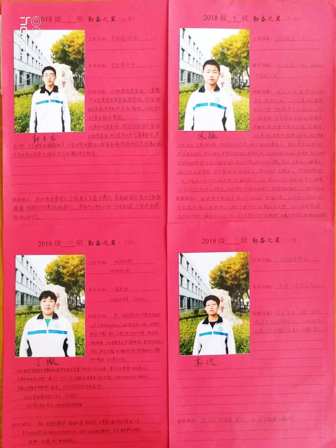 评选活动每月一次,宣传表扬班级里勤学好问,勤于思考,勤学上进的榜样!能够很好的完成“每月学习目标”任务,由班内提名,填写“勤奋之星”申报表,总结“学习经验”,在班内交流,从而提升班级学习氛围。