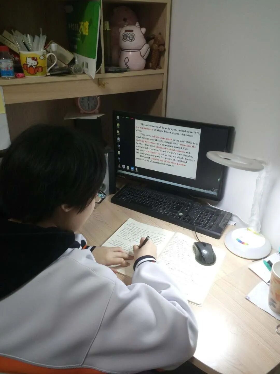 可是,我知道没有铃声,没有老师,没有合作以及竞争的同学,没有了第一天网课的新鲜感,你更容易累了困了烦了……别着急,办法总比困难多——你可以做做俯卧撑,做做眼保健操,唤醒身体,唤醒大脑,你更可以想想84岁的钟院士,想想你想成为的人的样子,想想自己可以努力成为一道光……你是不是会增长很多力量。毕淑敏说:所有的动力都来自于内心的沸腾。你可以想象种子生长的疼痛,那种挣开硬壳,顶出泥土的磨难,对一粒柔弱的种子而言,可说是顶天立地的壮举。一个人觉醒时的力量,应该大于一颗种子啊!