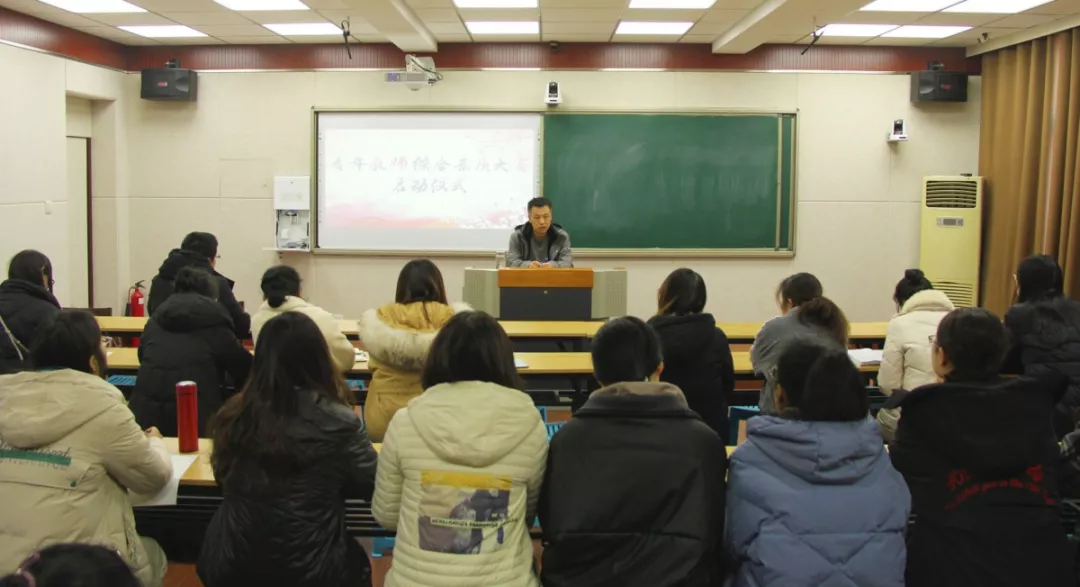 12月11日,教科研处在录播厅召开了青年教师培训会。本次培训会也是我校青年教师综合素质大赛的启动仪式。本次大赛共有学历案的编写、讲课、说课、板书、硬笔书法、演讲、教案评比、教育教学叙事、和高三学生共进考场九个比赛单元,内容非常丰富。