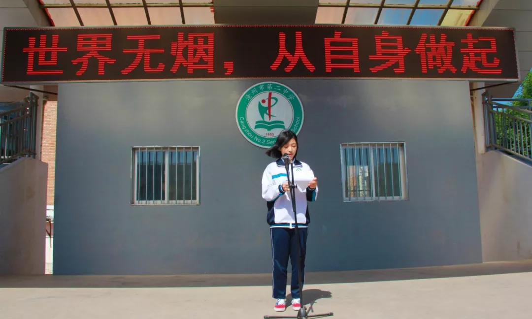 5月27日,升国旗仪式之后,高一21班的伯鑫雨同学在”5·31世界无烟日“到来之际,发出”世界无烟,从自身做起“的号召。