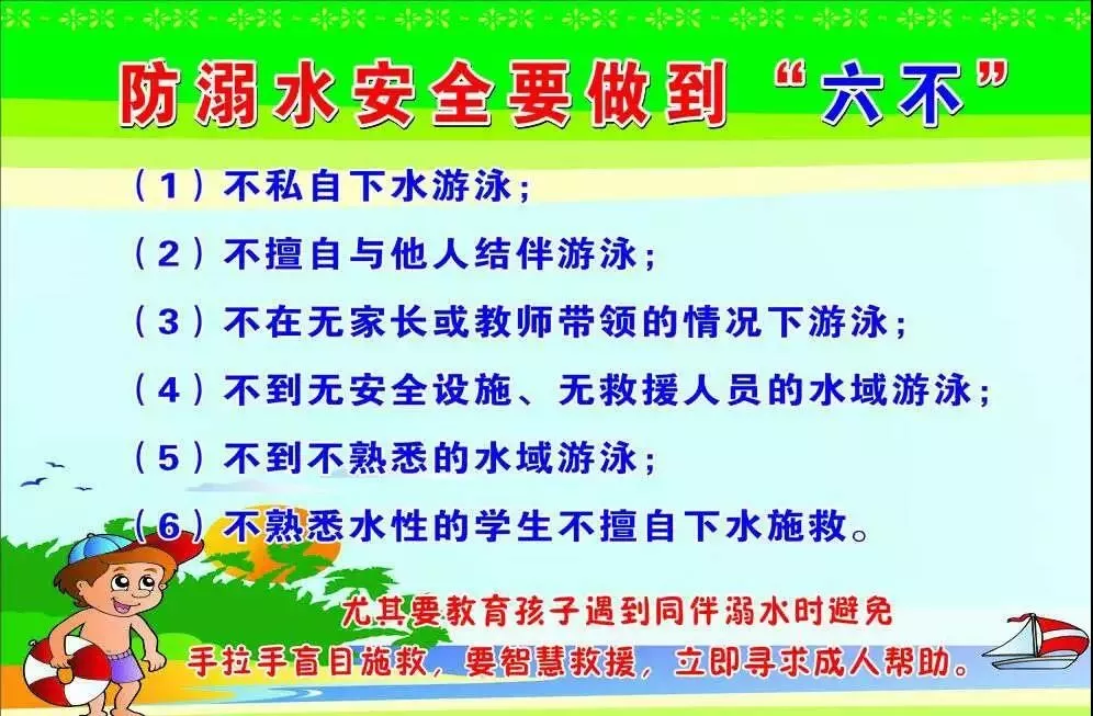 天气渐热,夏季来临,溺水事故进入危险期、易发期、高发期,需要学校、家长高度警惕,采取有力有效措施预防学生溺水事故。为切实加强安全教育、防止发生溺水事件,家、校之间应当密切配合做好对孩子的安全教育工作,切实提高孩子防溺水的自觉性和识别险情、紧急避险、遇险逃生的能力,现将有关防溺水常识及注意事项分享给家长和同学们。
