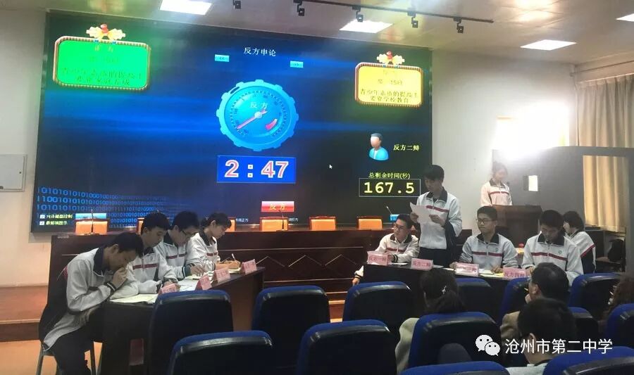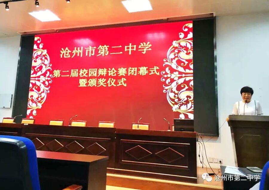 4月2日下午,辩论赛闭幕式在大会议室举行。闭幕式由苗杰主任主持,高一所有班主任和所有辩手到场,韩宝祥校长、郑锦侠副校长、胡永生副校长等领导参加会议。