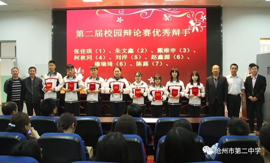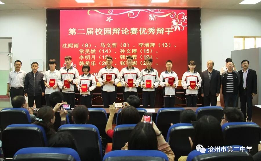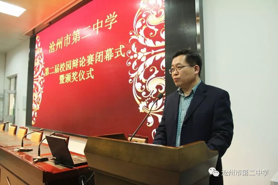 最后,韩宝祥校长致辞,他指出本次活动的“四个好”。一.赛事组织好,本次活动为学生思维的精进提供平台;二.辩手表现好,他们展现了二中学生的风采;三.评委点评好,评委精准的点评提升了赛事格调;四.班主任组织好,年级部精心安排,班主任抓好落实。韩宝祥校长还把四个辩题串联起来,对学生殷殷嘱托——体亲情之深厚,争朝夕之奋斗,铸就美好之未来。
