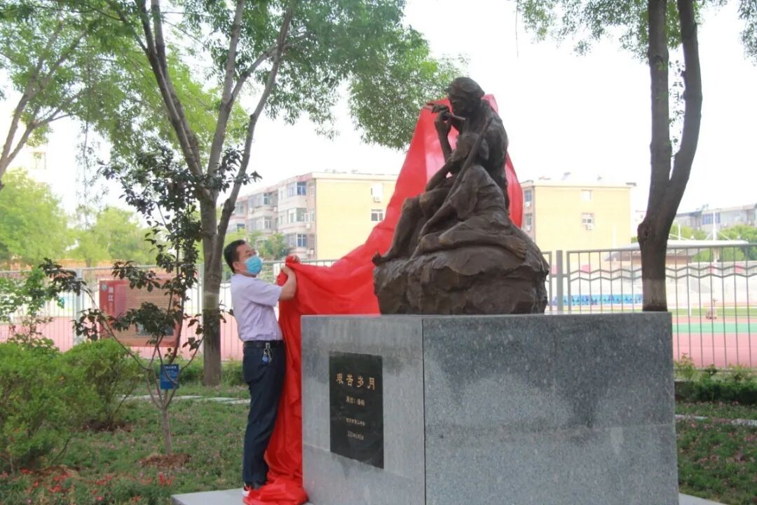 韩宝祥校长为“艰苦岁月”塑像揭幕