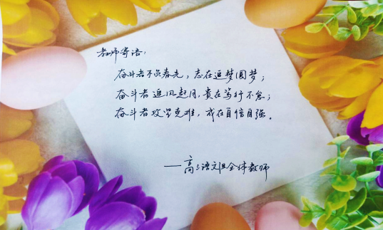 优美的文字洋溢着深切的祝福,学生的话语表达着对老师们无限的深情。一支粉笔两袖清风,三尺讲台四季春雨。天涯海角有尽处,只有师恩无穷期。教师们的寄语也表达了对学生们的殷切希望。老师们默默奉献,辛勤耕耘,不辞辛劳,甘愿平凡,只愿学生可以一朝跃龙门,不负韶光功。