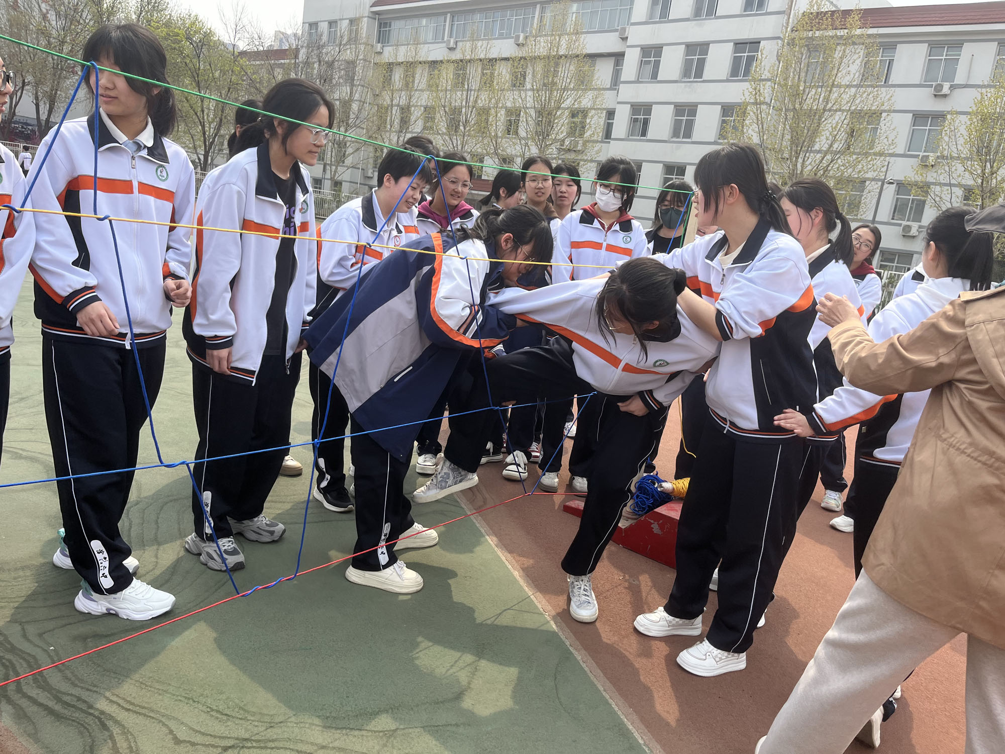 全体同学组成一个团队,每一个同学犹如一名战士。一个、两个、三个……大家互帮互助搭起人墙,顺利的通过了封锁线。
