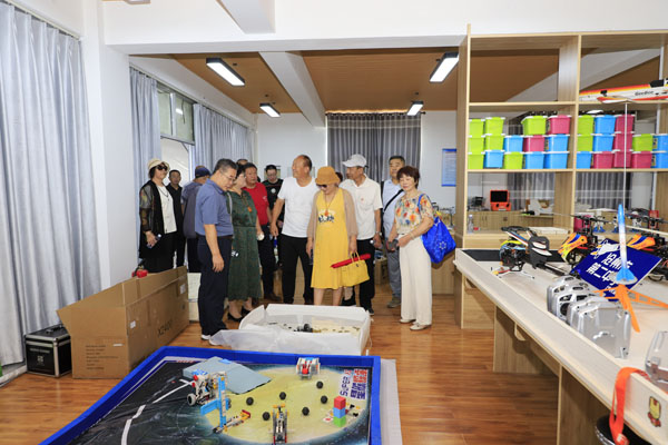在韩书记的带领下,校友们漫步校园,参观了焕然一新的教学楼、充满活力的运动场、设备完善的实验室、最新打造的科技馆等。在参观过程中,科技馆正在进行的航天展览和阅兵图片展、人工智能实验室的先进设施,以及学校在科技竞赛中取得的丰硕成果,均给校友们留下了深刻印象。