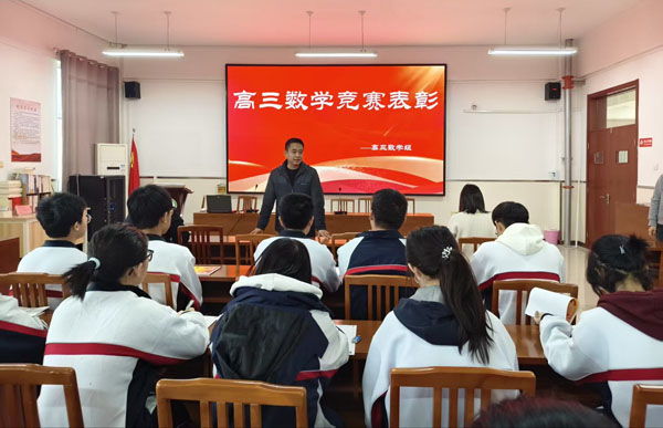 本次竞赛结束后,高三年级部和数学组对成绩优异的学生进行了颁奖,并由副校长崔金栋和数学组长王桂玉老师进行了竞赛总结,还提出了对高三生未来数学学习的新期望。老师们也表示,将以此次竞赛为契机,进一步探索AI技术与数学教学的深度融合,为学生提供更加优质、高效的教学服务,助力他们取得优异的成绩,迈向更加美好的未来。