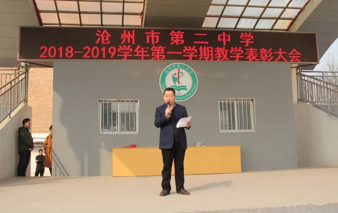 3月18日,升国旗仪式结束后,我校举行2018—2019学年第一学期教学表彰大会。表彰100名成绩优异的同学并颁发奖学金,对统考成绩优异的班级、备课组进行表彰,对教学教研成绩特别突出的的高三物理组、高三数学组、高三英语组团队以及三位组长颁发教学教研特殊贡献奖。出席表彰大会的领导有校长韩宝祥、副校长刘宝国、郑锦侠、乔巨辉、胡永生,工会主席王喜芹。教务处主任崔金栋主持大会。