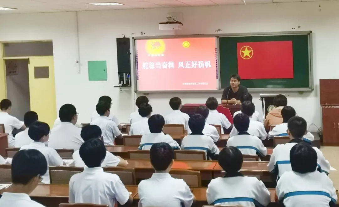 团委副书记葛立运指出:欢迎高一的团支部书记加入到二中共青团大家庭当中,在以后的学习工作中一定要有理想、有本领、有担当。全体学生共青团干部要不断激情奋斗,顽强拼搏,书写自己最豪迈的人生华章!